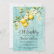 Elégante invitation au 40ème anniversaire au citron aquarelle avec une illustration florale et un arrière - plan turquoise. Personnalisez le texte avec les détails du parti.