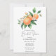 Carte de douche nuptiale à thème agrumes d'aquarelle illustrant l'aquarelle des oranges sur une branche d'arbre. Élégante écriture calligraphique, parfaite pour les mariages du printemps, de l'été ou de l'automne.