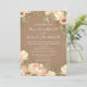 50 ans ensemble, pêches et roses romantiques et adorables, faire-part de mariage aquarelle avec fleurs sur fond naturel kraft brun et texte blanc.