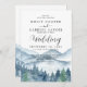 Elégante aquarelle rustique montagnes et la scène forestière, avec des arbres et des montagnes bleu et vert luxuriants. Pour ceux qui aiment une ambiance de rêve romantique boisée pour leur cérémonie et célébration.