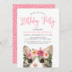 Belle invitation de fête d'anniversaire sur le thème du chat avec "Anniversaire" présentée dans un script rose fantaisiste avec un chat aquarelle peint portant une couronne de fleurs rose et mauve. Personnalisez les invitations de fête d'anniversaire sur le thème du chaton avec le nom de la fille d'anniversaire et les détails de la fête. Les invitations s'inversent pour afficher le motif à points rose et blanc.