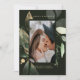 Un design mariage aquarelle très moderne avec votre photo contre la végétation luxuriante du feuillage d'eucalyptus agrémentée de feuilles doux peints en or sur fond vert minuit. Personnalisez facilement vos informations et vos photos préférées pour en faire la vôtre.