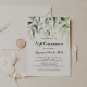 Cette invitation à la première communion d'eucalyptus aquarelle est parfaite pour un événement religieux rustique. Cette conception artistique présente un feuillage vert d'eucalyptus dessiné à la main, aquarelle, inspirant la beauté naturelle.