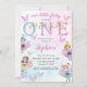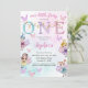 Profitez de ce joli et girly fée d'anniversaire modèle invitation fête. Il s'agit d'un design original du studio et comprend le mot "one" en gros lettrage et lumière à cordes fantaisie, fées mignonnes, papillons et délicat arrière - plan d'aquarelle. Facile à customiser avec vos propres détails.