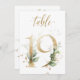 Belle carte de numéro de table avec un motif botanique - une aquarelle illustration de feuilles verts et or. Tableau 19. Veuillez vérifier tous les numéros disponibles
