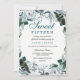 Aquarelle florale Turquoise Green Sweet 15 Party Invitation Collection correspondante à Niche et Nest store. élégant aquarelle peinte design botanique floral.