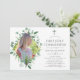 Carte d'invitation à la première communion de forêt sauvage branchée eucalyptus vert de forêt conçue pour être rapidement et facilement customisée à vos spécificités. Une photo en forme de portrait est conseillée.