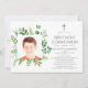 Jasmin branché, eucalyptus, lierre et fougères forêt sauvage première communion cartes d'invitation conçues pour être rapidement et facilement customisé à vos spécificités. Une photo en forme de carré est conseillée.