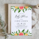 Famille d'Invitations et amis à votre événement avec cette invitation personnalisable baby shower d'agrumes. Il présente des illustrations aquarelle de pamplemousses, clémentines, fleurs florales et verdure. Cette invitation aux agrumes sera parfaite pour les baby showers à thème et d'été. Personnalisez en ajoutant les détails de votre événement.