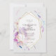 Cette élégante invitation de mariage présente un arrière - plan gris clair avec des fleurs de cerisiers de couleur aquarelle dans les tons violet, rose et bleu encadrés par un cadre faux or. L'envers dispose d'un arrière - plan gris clair. Modifiez la couleur de l'arrière - plan et personnalisez-la selon vos besoins. Vous pouvez trouver des produits correspondants dans mon magasin.