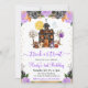 Joli Aquarelle Trick ou Treat Halloween design avec maison hantée, ours, renard, chien et raton laveur animaux en costumes, un fantôme et des fleurs violettes et noires