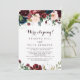 Cette carte de réception en velours d'automne illustrée est parfaite pour une soirée post-elopement moderne. Le design est composé d'une aquarelle artistique peinte à la main bleu marine, bordeaux, rouge, roses roux et pivoines avec d'élégants feuilles verts, inspirant la beauté idyllique colorée de l'automne. Les cartes RSVP sont vendues séparément.