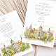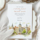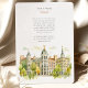 Célébrez votre journée spéciale avec cette faire-part de mariage exquise, présentant l'architecture emblématique de Madrid, Espagne. L'avant offre une vue pittoresque sur la ville, avec ses édifices élégants, ses dômes et ses tours, rendus dans un style aquarelle doux et artistique. Une végétation luxuriante encadre la scène, ajoutant une touche de beauté naturelle. Le revers, conçu pour "The Finer Details", poursuit le beau thème, présentant l'horizon de Madrid avec une perspective différente, tout en conservant le charme de l'original. La douce aquarelle évoque une atmosphère romantique et intemporelle. Cette invitation est parfaite pour un mariage de destination à Madrid, une célébration à thème espagnol, ou pour tout couple qui apprécie l'architecture fine et une esthétique sophistiquée pour leur journée spéciale.