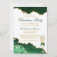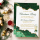 Elégante aquarelle moderne Emerald Green et or Marble Agate Geode Christmas Party Invitation Card - Arrière - plan blanc avec script or. Verre de Champagne avec Bow.