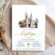Aquarelle bleu poussiéreuse moderne et élégant Baptême Invitation. Le design comprend une aquarelle d'une église, un script élégant en or pour le mot "Baptême", une croix d'or, et des lettres majuscules de bloc pour l'information de célébration. Pour modifier les couleurs et les polices, choisissez de modifier cette conception pour ouvrir d'autres options de personnalisation.