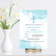 Envoyez ces invitations de baptême modernes mais élégantes à vos invités. Aquarelle bleu pastel clair sur arrière - plan blanc avec croix. Cartes modifiables - personnalisez-les en ajoutant votre texte. Parfait pour tous les thèmes de fête.
