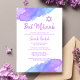 — Collection #LC — Invitations de Bat mitzvah juifs de 12 ans, religieuses, uniques et modernes, d'aquarelle. Joli design avec violet clair, violet, bleu avec Star of David. Cartes modèles - facile à ajouter votre texte. Le dos de la carte a fille / fille nom complet.
