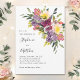 Ces invitations de mariage présentent un design floral d'aquarelle moderne avec des fleurs et du feuillage bordeaux, violets et roses. Des articles de papeterie correspondants sont également disponibles.