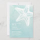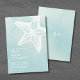 Simple Moderne Aquarelle Été Plage Mariage Invitation. Un arrière - plan d'aquarelle bleu turquoise et apaisant prépare le terrain pour une ambiance mariage balnéaire élégante qui vous donnera un sentiment d'eau de mer. Un contour d'étoile blanche donne un aspect coquillage. Ce n'est pas une interprétation littérale et exagérée d'une plage, mais un cadre côtier un peu abstrait. Les polices Serif en gras sont mélangées avec une police moderne simple pour une ambiance élégante mais décontractée et décontractée. Les polices sont blanches pour correspondre à l'étoile de mer, mais vous pouvez les changer à ce que vous voulez. Vous pouvez même changer la couleur de l'étoile de mer ! Sur le dos est un simple monogramme initial avec l'étoile de mer. Disponible sous forme d'invitation imprimée ou d'invitation numérique téléchargeable que vous pouvez envoyer par e-mail ou avoir imprimé localement !