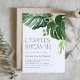 famille d'Invitations et amis à votre événement avec cette invitation wedding shower tropicale personnalisable. il comprend des illustrations aquarelle de feuilles monstères avec des accents faux feuille d'or. Personnalisez cette invitation monstre wedding shower en ajoutant vos propres détails. Cette invitation à la wedding shower verdoyante conviendra parfaitement aux wedding showers d'été.