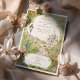 Profitez du charme d'une histoire d'amour parisienne avec ce faire-part de mariage aquarelle, avec l'emblématique basilique du Sacré-Coeur de Montmartre encadrée par des fleurs Art nouveau. Parfait pour les mariages romantiques à destination française, cet élégant design donne le ton d'une fête intemporelle. Entièrement personnalisable avec vos noms, dates et informations sur le lieu.