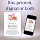 Célébrez une douce nouvelle arrivée avec cette invitation minimaliste à l'aquarelle Baby Brunch! Dotée d'une pile de crêpes surmontées de fraises et de bleuets, cette invitation est parfaite pour un brunch au baby shower décontracté et délicieux. Avec des détails doux peints à la main, ce design est à la fois charmant et moderne, idéal pour une maman qui aime les réunions confortables. Facile à personnaliser avec vos détails d'événement, il est l'invitation parfait pour votre journée spéciale.