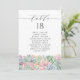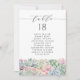Ajoutez un accent boho à votre événement avec ces cartes de table personnalisables. Il dispose d'une guirlande aquarelle de succulents rose pastel, vert et bleu. Cette carte de table succulente est parfaite pour les mariages d'été, les diplômes, les anniversaires, les baby showers, et bien plus encore.