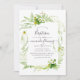Invitation baptême verdoyante avec fougères, fleurs sauvages et fraises et un arrière - plan d'aquarelle verte sauge.