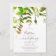 Invitations de baptême à feuillage vert et blanc tendance avec une élégante typographie à écriture manuscrite personnalisable selon vos spécificités d'événement.