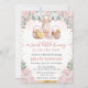 Invitation Aquarelle Rabbit et Baby shower de fleurs roses
