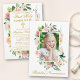 Elégant moderne Première Sainte Communion Aquarelle rose Blush Roses floraux, Fleurs blanches et verdure botanique Gold Photo Invitation