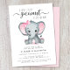 Invitation Aquarelle rose éléphant Bébé Fille Douche