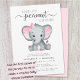Invitation Aquarelle rose éléphant Bébé fille saupoudrer