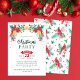 Cette décoration de Noël est ornée d'une bordure d'aquarelle peinte à la main d'oiseaux cardinaux rouges, d'oranges, de fleurs de poinsettia, de baies sèches et rouges, de feuilles de pins et de fleurs rouges. Vous pouvez pleinement customiser tout le texte pour convenir à votre événement. Sur le dos de la carte se trouve un motif ou rouge cardinal oiseaux et la verdure hivernale de Noël. Voir l'ensemble de la collection correspondante.