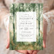 Un paysage rustique de forêt aquarelle dans les tons vert et or fournit l'arrière - plan pour le texte gris charbon sur un écran blanc rectangulaire. La scène boisée est répétée sur le dos de la carte.
