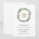 Cette simple et élégante invitation au trentième anniversaire comprend une couronne d'aquarelle branchée pleine de verdure et de feuillage, avec le faux numéro d'or "30" au centre, sur un arrière - plan blanc.
