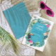 Des couples colorés s'invitent à la douche avec un cadre turquoise et une bordure avec un toucan audacieux au milieu des fleurs d'hibiscus et des feuilles de palmiers. Reverse a répétitif, feuille de palme motif dans les nuances de turquoise. Ajoutez les détails de votre événement à l'aide du modèle fourni. Ils sont parfaits pour les événements d'été, tropicaux et/ou de destination. Recherchez ID577 pour voir les produits correspondants.