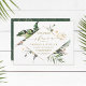 Cette invitation à la douche couple comprend des feuilles de palmiers aquarelle, des feuilles de bananes, des feuilles tropicaux exotiques, des feuilles faux or avec un cadre en faux diamant doré, et un motif tropical vert & or sur le dos. Idéal pour les événements tropicaux, de destination, d'été, les mariages de plage ou autres événements similaires.