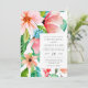 Cette jolie faire-part de mariage tropicale colorée présente un joli design floral aquarelle. Des fleurs d'aquarelle, dont l'hibiscus et la plumeria, sont disposées dans un bouquet de fleurs tropicales qui présente également un feuillage vert émeraude luxuriant et un corail bleu turquoise. L'arrière de la carte est revêtu d'une couleur arrière - plan turquoise pour agrémenter les flancs de corail et de rose vif sur l'avant de la carte. La papeterie mariage correspondante est disponible dans notre collection Tropical Floral mariage.