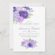 Invitations de fiançailles à fleurs d'aquarelle mariage avec la couleur de l'année 2018 ultra violet avec des nuances de violet et de sauge vert. Les fleurs comprennent hydrangée, lavande, pivoines et roses.
