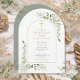 Doté de feuilles d'aquarelle délicats et d'une élégante arche et crucifix en or, cette invitation chic au baptême/baptême sans sexe peut être personnalisée avec vos informations spéciales, avec un arrière - plan vert sage au verso. Conçu par Thisisnotme©