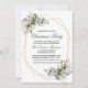 Elégante aquarelle verte fête de Noël Invitation inclut belle aquarelle botanique verdure, eucalyptus feuilles, baies sèches et autres beaux feuillages. Cadre géométrique Or.