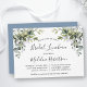 Moderne Elegant Aquarelle Botanique Verdure Fête des mariées Luncheon Invitation Card comprend des feuilles d'eucalyptus, vert feuillage botanique, feuilles bleu poussiéreux et d'autres belles verdure botanique. Script de calligraphie. Bleu Dusty Back.