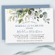 Moderne Elegant Aquarelle Botanique Verdure Fête des mariées Luncheon Invitation Card comprend des feuilles d'eucalyptus, vert feuillage botanique, feuilles bleu poussiéreux et d'autres belles verdure botanique. Script de calligraphie branché. Bleu Dusty Back.