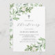 Aquarelle Verdure et Fleurs blanches Invitation Christening | Famille Invitation et amis à votre événement avec cette invitation à baptiser personnalisable. Il présente des illustrations aquarelles de feuillage et de fleurs blanches avec un motif assorti. Cette invitation au baptême à fleurs est parfaite pour les baptêmes de printemps et de jardin.