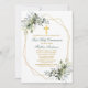 Elégante aquarelle verdure Première communion L'invitation comprend des feuilles d'eucalyptus aquarelle et d'autres beaux feuillages botaniques. Croix d'or. Sage Green Back.