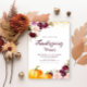 Diffusez la joie de Thanksgiving avec cette belle carte d'invitation à l'action de grâce fleurie d'automne. Le moyen parfait d'invitation vos proches à votre rassemblement. Avec un beau texte personnalisé et une impression de haute qualité, cette carte est sûre de faire une impression durable.