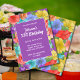 Fleurs d’aquarelle amusantes, vives et multicolores peintes par Suki’s. De grandes fleurs décorent le script de brosse arrière - plan d'anniversaire en indiquant le haut de l'invitation d'anniversaire. Customiser les détails de l'invitation de fête d'anniversaire et profiter de la fête!.