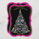 Invitation Arbre de Noël Décoré Double Côté, Noir/Rose