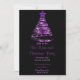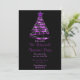 Un arbre de Noël violet sur un arrière - plan noir. Le dos de l'invitation est noir avec motif de neige